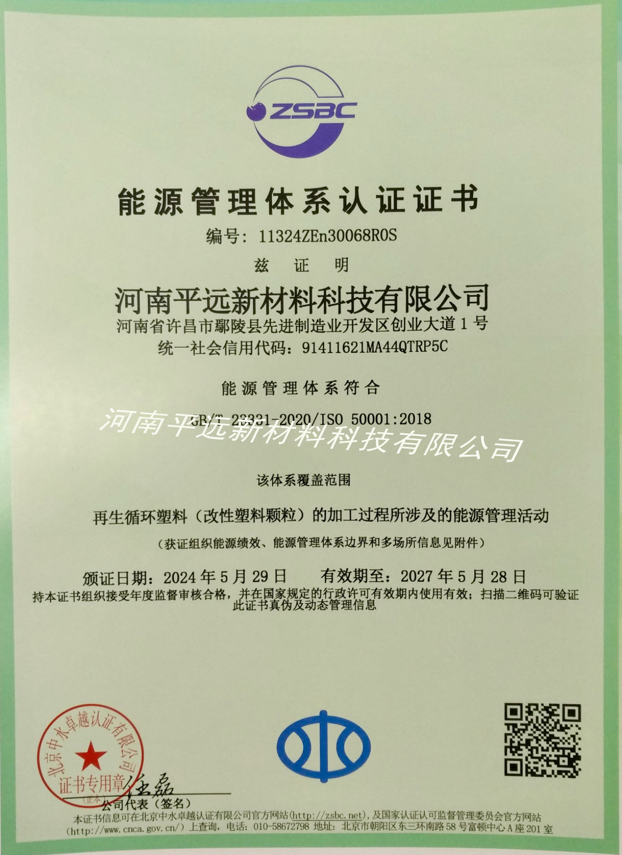 近日,河南蜜桃MY.1688.COM新材料科技有限公司順利通過嚴格(gé)評審,獲得國家能源管理體係認證(Energy Management System 證書,標誌著河南平(píng)遠的節能管理工作取得(dé)巨大成效,公司能源管(guǎn)理體係建設邁上新台階。