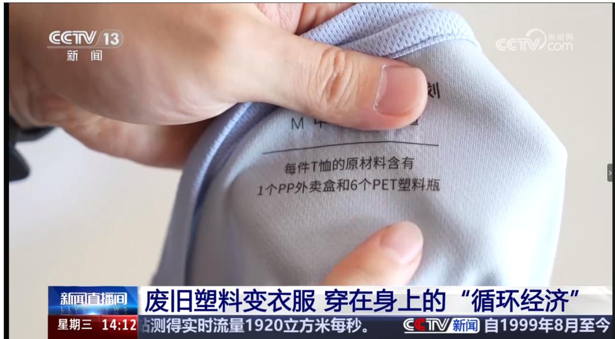 9月18日下午兩(liǎng)點,CCTV13新聞頻道播放了長(zhǎng)達10分鍾的再生塑料(liào)相(xiàng)關新聞,報道了我國在廢舊塑料回收、廢舊餐盒做成速幹衣、廢舊餐盒做成汽車配件方麵的高值化利用。